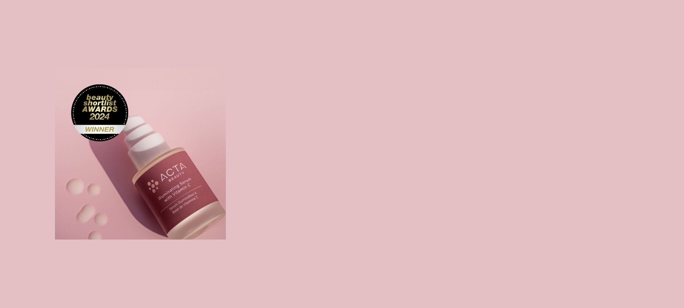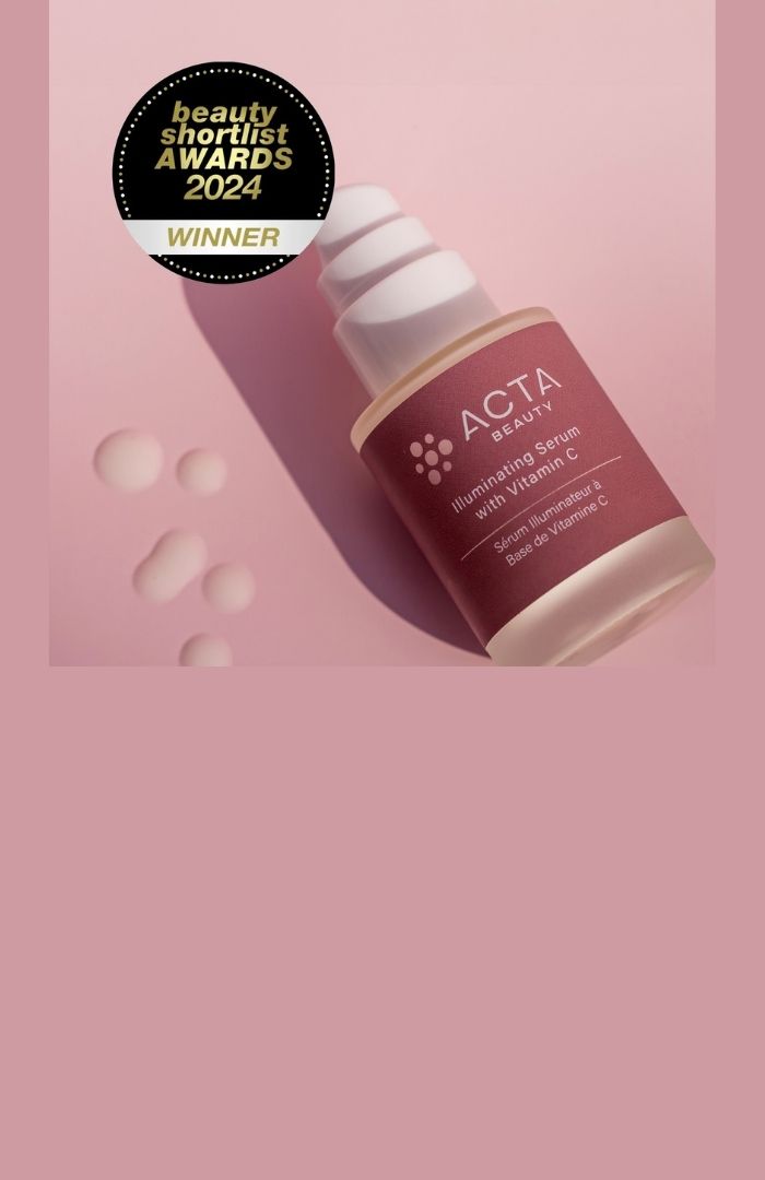 Acta Beauty formulates anti-aging products with active ingredients like vitamin C, bakuchiol, vegan collagen, botanical stem cells, and hyaluronic acid. We carefully select ingredients found in nature to support renewed skin.